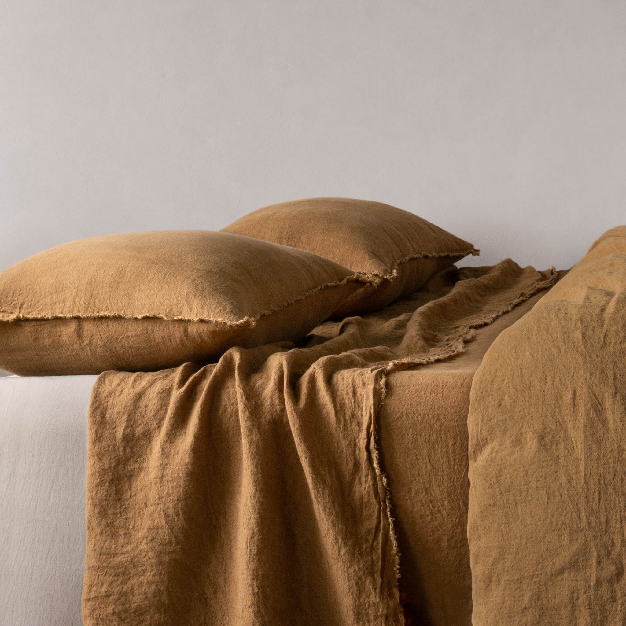 WASH: A gentle, warm machine wash is recommended with like colours. Avoid overfilling the machine so the product can move freely during the wash. To maintain the colour and integrity of your linen, we advise not to use bleach or detergents that contain optical brighteners or the enzyme cellulase and avoid exposure to continual sunlight. We suggest using a mild liquid detergent on all of our linen sheets, taking care to ensure your sheets are well-rinsed at the end of each cycle. Our linen has been pre-washed at very high temperatures to ensure that with proper care no further shrinkage should occur.